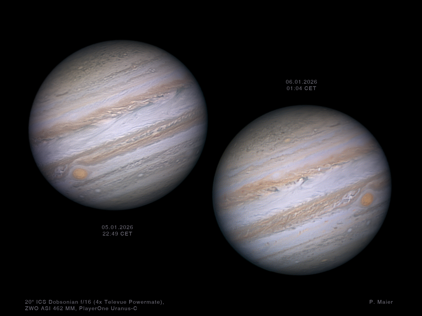 Jupiter in Oppositionsnähe am 5./6. Januar 2026